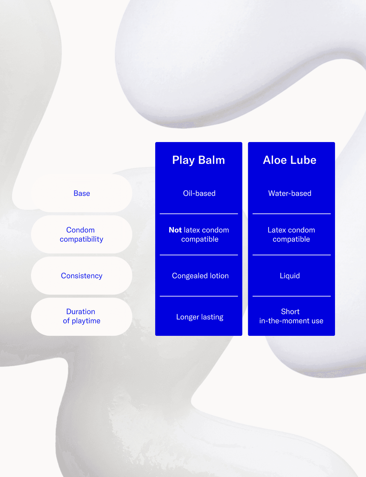 For safe lubrication, stick to water-based and silicone-based options designed for intimacy, as they are tested for safety and effectiveness. Dame’s Aloe Vera Lube is water-based and made from organic aloe vera which means it’s safe for toys and most condoms.