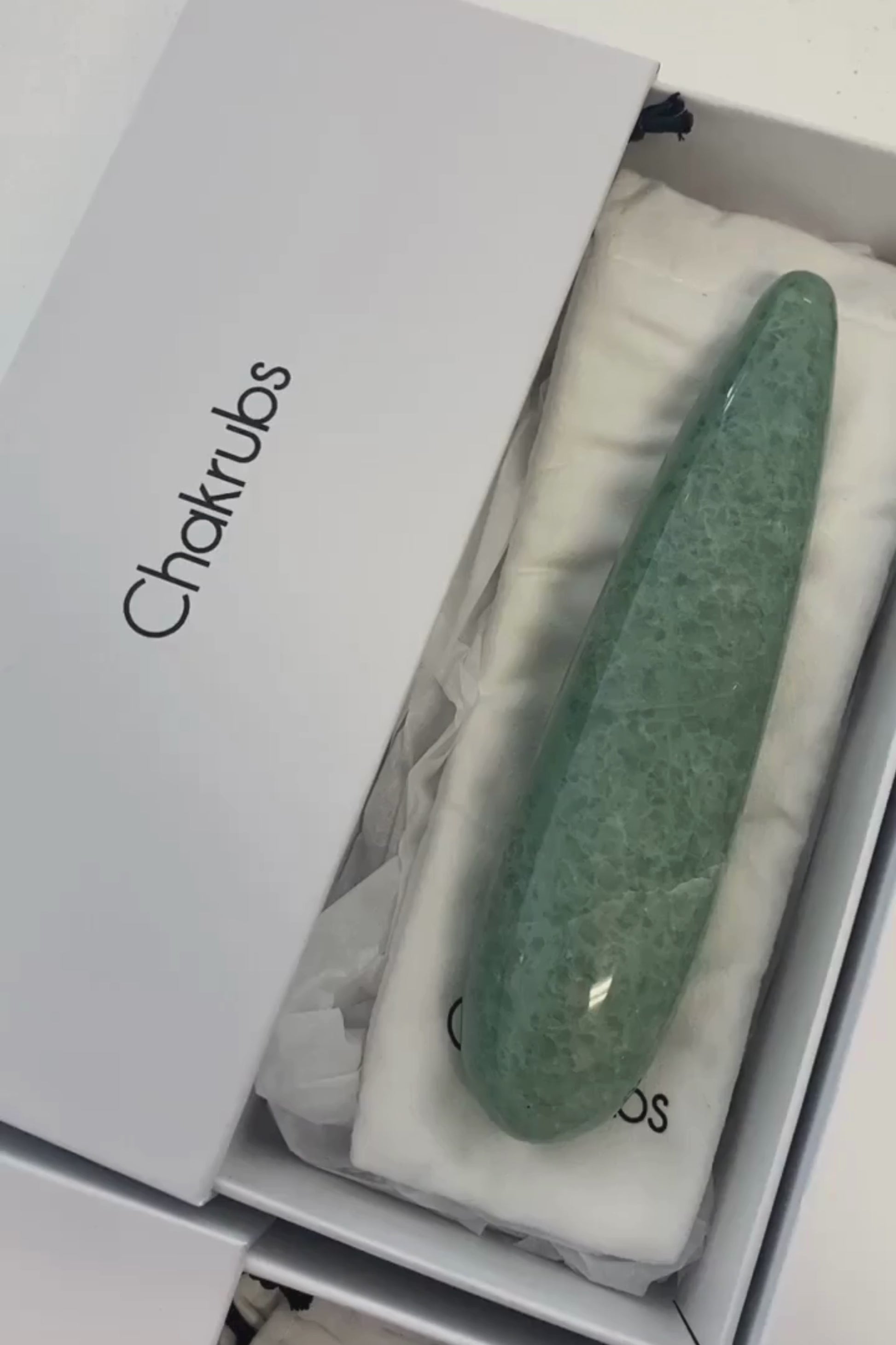 The Indian Jade Original is made from pure green aventurine, which is thought to be the luckiest of all crystals. This precious stone instills a sense of optimism and zest for life, allowing one to move forward with confidence and embrace change. Its gentle green color resonates with the heart chakra and it can be used for harmonizing the emotional body and attracting love. The crystal dildo enhances creativity and motivation, encouraging perseverance in maneuvering through life’s obstacles. Green aventurine is known for helping to release old patterns, habits, and behaviors so that new growth can take place.