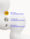 - Naturally-derived ingredients like shea butter, coconut oil, and beeswax support the moisture barrier, strengthen the skin, and lock in hydration.